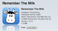 W AppStore, wirtualnym sklepie z aplikacjami zewnętrznymi na iPhone'a, pojawiła się właśnie długo oczekiwana aplikacja Remember the Milk. RTM to jeden z najpopularniejszych programów opartych na filozofii Getting Things Done (polskie tłumaczenie to: skuteczna realizacja zadań). Używając dużego uogólnienia Remember the Milk to aplikacja, która pozwala na zarządzanie zadaniami. Jej podstawowa wersja to aplikacja typu web. Głównym atutem RTM jest możliwość integracji w popularnych serwisach zewnętrznych, tj. Gmail, Windows Mobile, Google Calendar, Twitter i teraz iPhone.