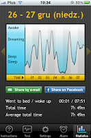 Niektóre pomysły na aplikacje iPhone'owe mogą powalać niesamowitą innowacyjnością - Sleep Cycle to na pewno jeden z takich pomysłów. Aplikacja ma za zadanie zoptymalizować sen użytkownika iPhone'a poprzez analizę faz snu i odpowiednie włączenie budzika w fazie, w której nasz organizm najmniej jest narażony na utratę energii związanej ze złym wybudzaniem... :) Trudno traktować w pełni na serio działanie aplikacji (w końcu iPhone nie jest "przyczepiony" chipem do naszego mózgu, lecz leży sobie pod poduszką w rogu łóżka), ale pewne informacje zbierające przez aplikacje mogą rzeczywiście być przydatne. Na przykład czas tzw. twardego snu (o ile się nie mylę, tylko wtedy nasz organizm naprawdę wypoczywa). Dzięki Sleep Cycle można analizować długość naszego snu, co jest bardzo przydatne dla kogoś kto ma ściśle wyliczony czas snu (głównie za krótki)?
