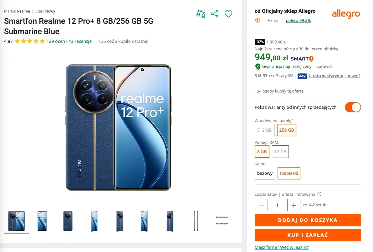 Realme 12 Pro+ 8/256 GB - 949 zł (450 zł taniej)