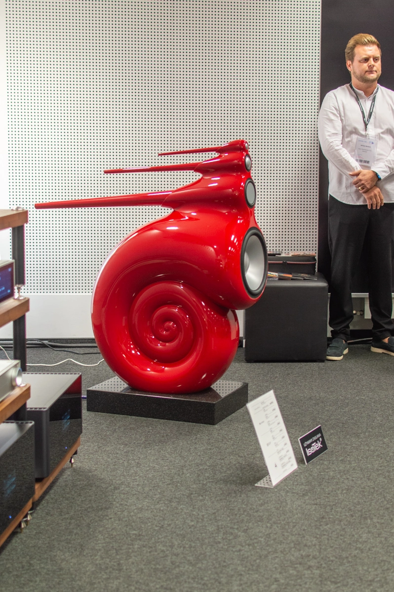 Dzięki staraniom polskiego dystrybutora marki Bowers & Wilkins - firmy Audio Klan - warszawscy audiofile mogli posłuchać Nautilusów w efektownej czerwonej wersji kolorystycznej, zaprezentowanej w towarzystwie topowej elektroniki od Rotel Michi, Luxman i Clearaudio. To połączenie sprzętu z najwyższej półki idealnie podkreślało możliwości tych legendarnych kolumn.