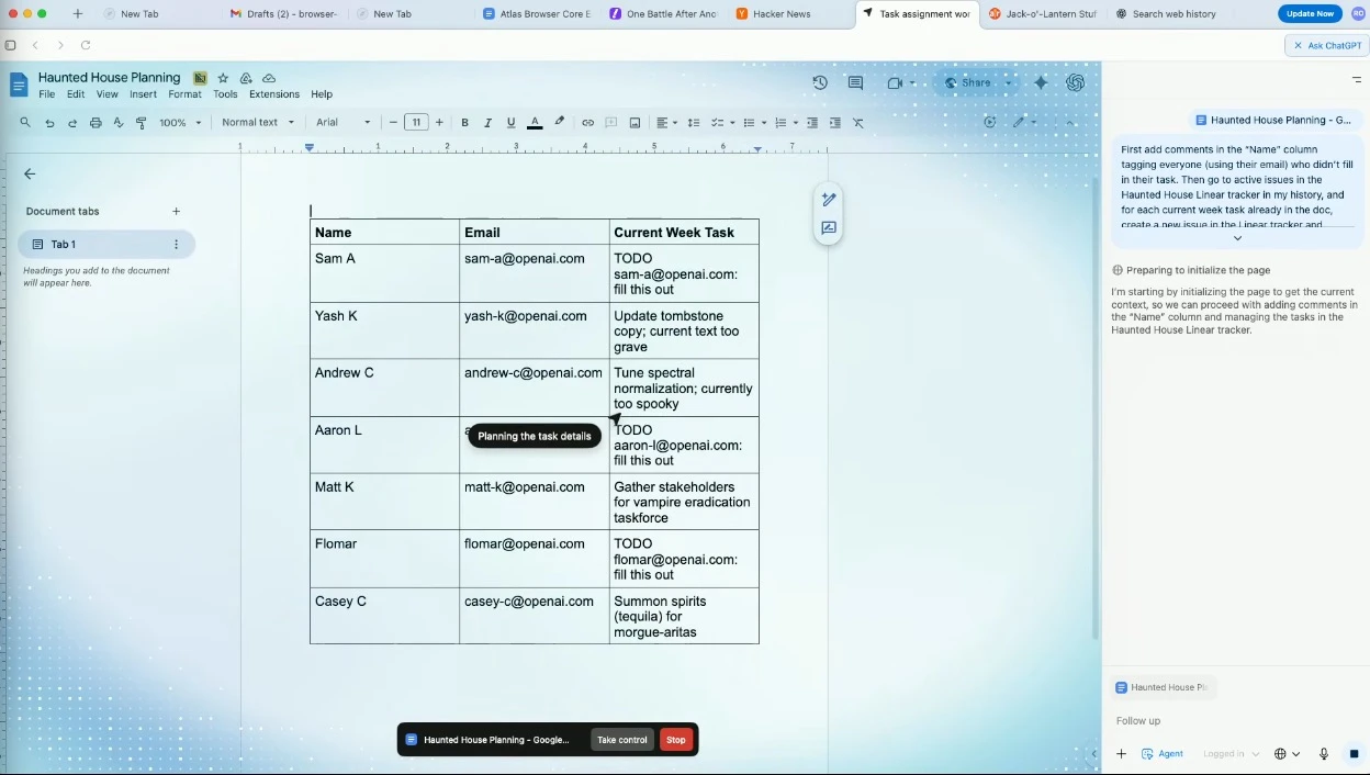Najbardziej zaawansowaną opcją przeglądarki jest jednak tryb agenta. Jak on działa? Oprogramowanie przejmuje kontrolę nad tym, co się dzieje w przeglądarce i może wykonywać za nas określone zadania, jeśli tylko go poprosimy. Na przykład podczas pisania wiadomości przez Gmaila możemy poprosić agenta, aby go poprawił - na ekranie zobaczymy animację oraz wirtualny kursor, który pokazuje, nad czym sztuczna inteligencja pracuje.