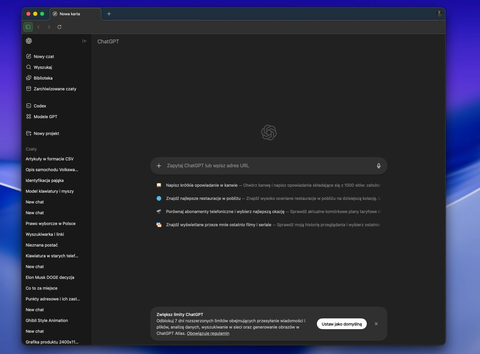 Przeglądarka ChatGPT Atlas jest już dostępna dla pierwszych użytkowników. Zainstalowałem ją praktycznie od razu, ale mnie rozczarowała ograniczonymi funkcjami. Na szczęście niebawem zostanie poprawiona.