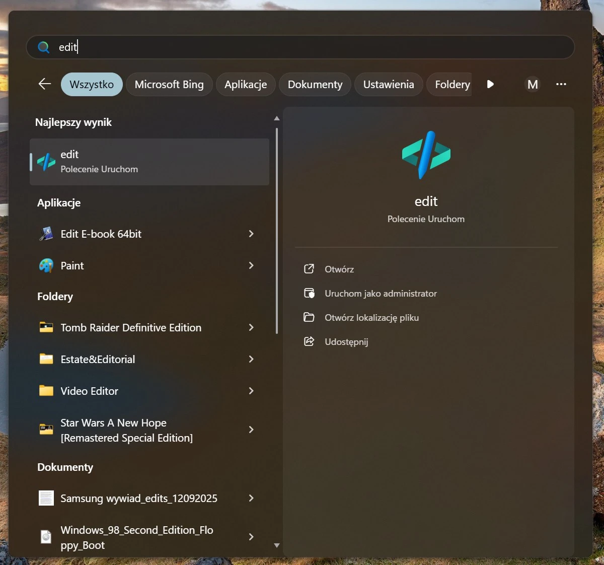 Przewaga Edita polega na tym, że jest natywnie zintegrowany z Windowsem, nie wymaga instalacji dodatkowych pakietów czy konfiguracji WSL. To edytor, który po prostu działa - zarówno dla szybkich edycji plików konfiguracyjnych, jak i bardziej złożonych zadań edycyjnych.