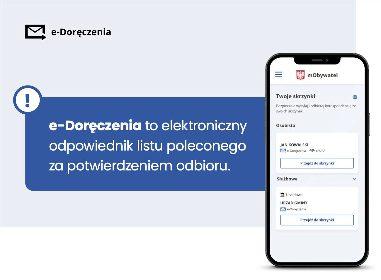 - powszechność – każdy obywatel może korzystać z e-Doręczeń