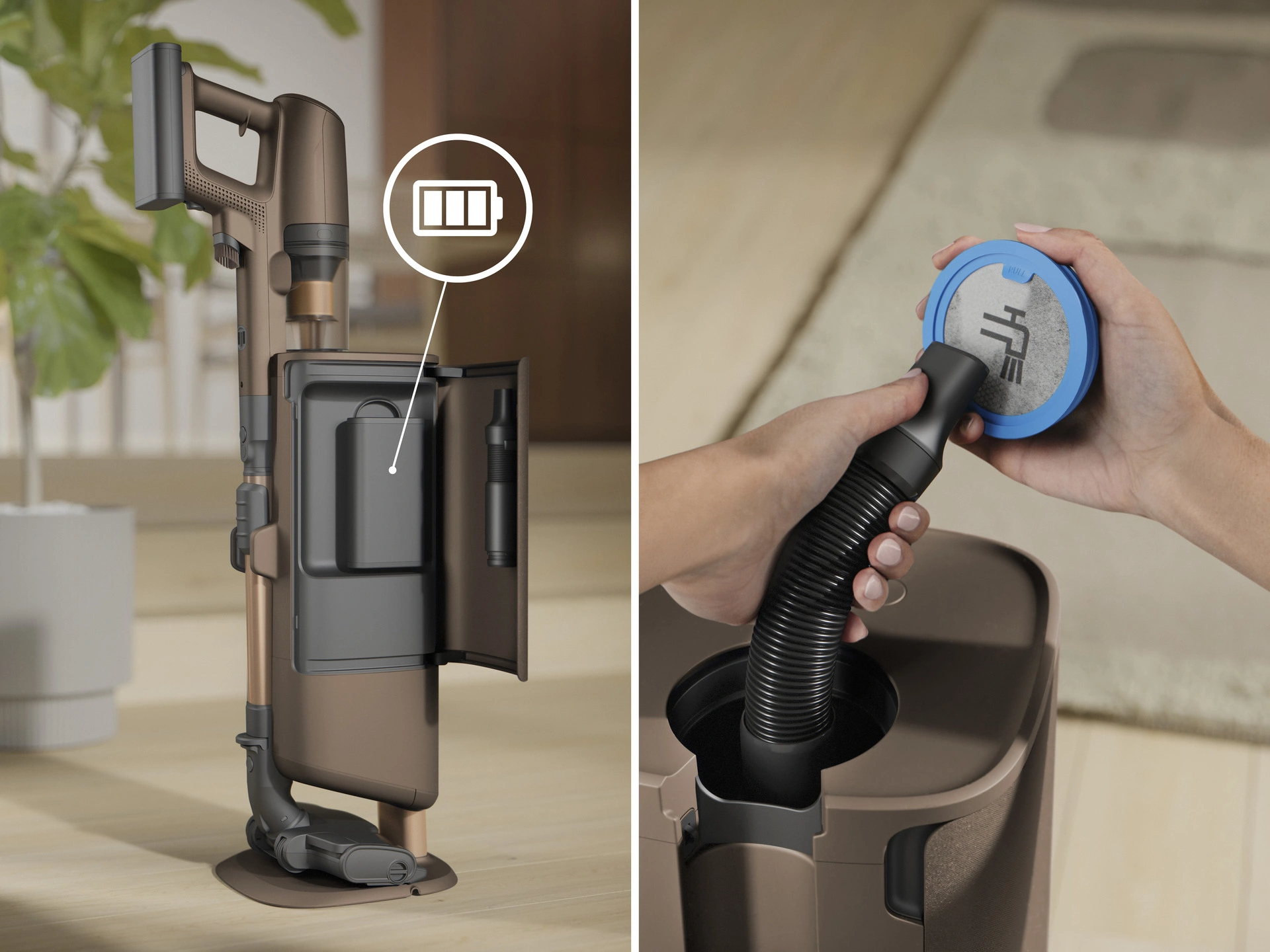 A to nie jedyne zalety stacji ZeroDust. Posiada miejsce do ładowania dodatkowej baterii, system czyszczenia filtrów i dodatkową filtrację usuwanych odpadów. Co więcej - podstawa stacji jest obrotowa w zakresie 360 stopni, dzięki czemu można ją lepiej dopasować do kształtu naszego pomieszczenia.