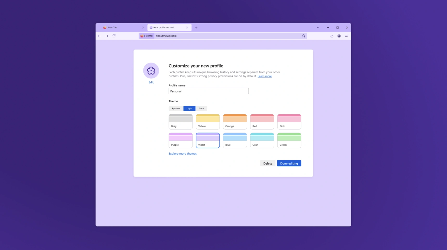 Firefox 144 kończy tę gehennę wprowadzając natywny menedżer profili dostępny bezpośrednio z menu przeglądarki. Teraz wystarczy kliknąć ikonę konta w pasku narzędzi, aby utworzyć nowy profil, przełączyć się między istniejącymi lub dostosować je według własnych potrzeb. Każdy profil może mieć własną nazwę, motyw kolorystyczny i awatar, co ułatwia ich wizualne rozróżnienie - szczególnie przydatne, gdy masz jednocześnie otwarte okna służbowego i prywatnego profilu.