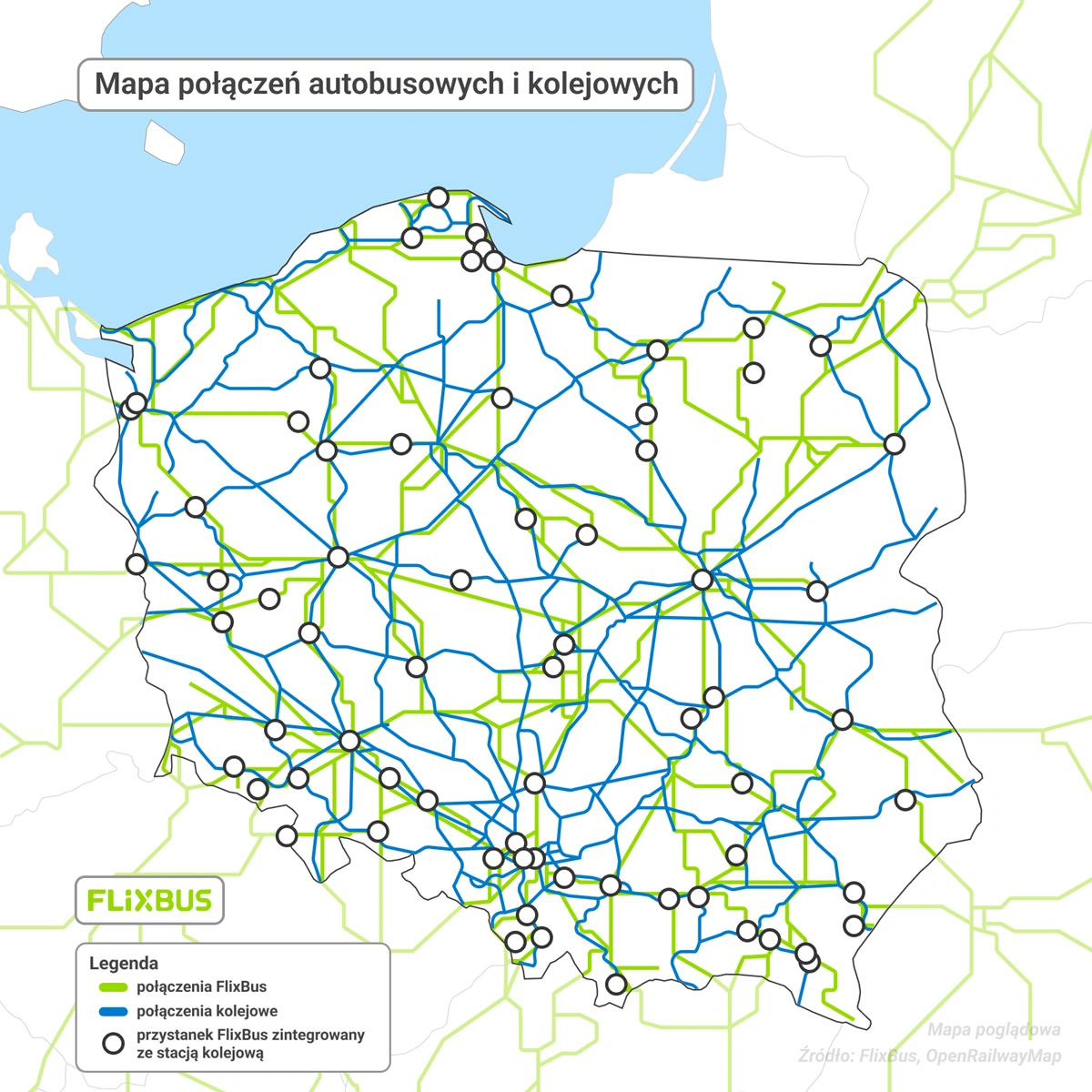 Dzięki integracji z FlixBusem oferta została rozszerzona o ponad 500 przystanków autobusowych, w tym 70 połączonych bezpośrednio ze stacjami kolejowymi.