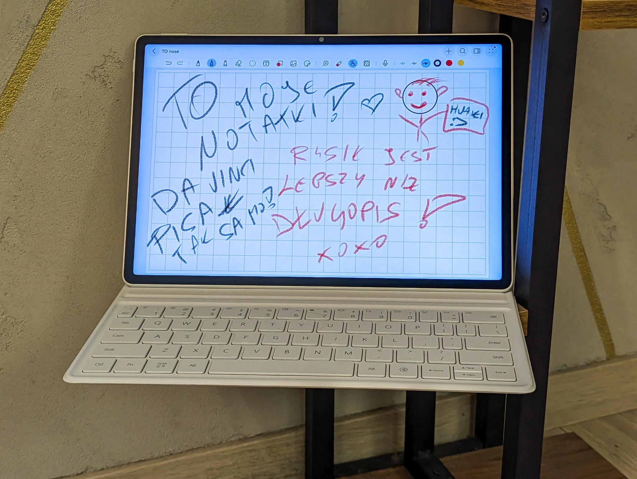 Minusik? Ta wersja klawiatury nie ma gładzika oraz miejsca na odłożenie rysika. Szkoda, bo Huawei ma taką klawiaturę w ofercie, ale jest zarezerwowana dla droższych urządzeń. Czy te braki przeszkadzają w użytkowaniu? Brak gładzika nie pozwala z tabletu zrobić 100-procentowego laptopa, ale to akurat nie jest jakaś olbrzymia wada. Miejsce na rysik to już moje narzekanie, bo mocuje się go magnetycznie do krawędzi tabletu. Nie przepadam za takimi rozwiązaniami, bo już raz tak zgubiłem rysik w zupełnie innym urządzeniu. Oczywiście odnalazłem go później w tym samym plecaku, w którym nosiłem tablet - włożyłem go do innej przegródki, ale niesmak pozostał.