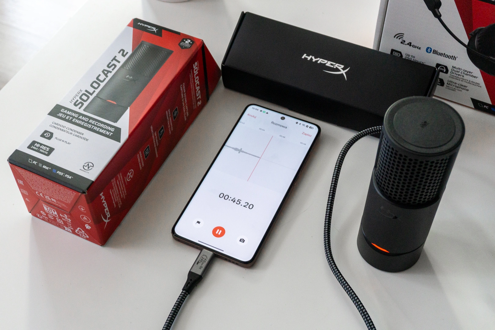 Producent nie wspomina o tym na opakowaniu, ale HyperX SoloCast 2 świetnie dogaduje się także z urządzeniami mobilnymi, jak smartfony oraz tablety. W połączeniu z niską masą tego urządzenia oraz jego kompaktowymi wymiarami, powstaje naprawdę niezły backupowy mikrofon do pracy w terenie, możliwy do trzymania w dłoni lub postawienia na dowolnej powierzchni bez dodatkowych akcesoriów.