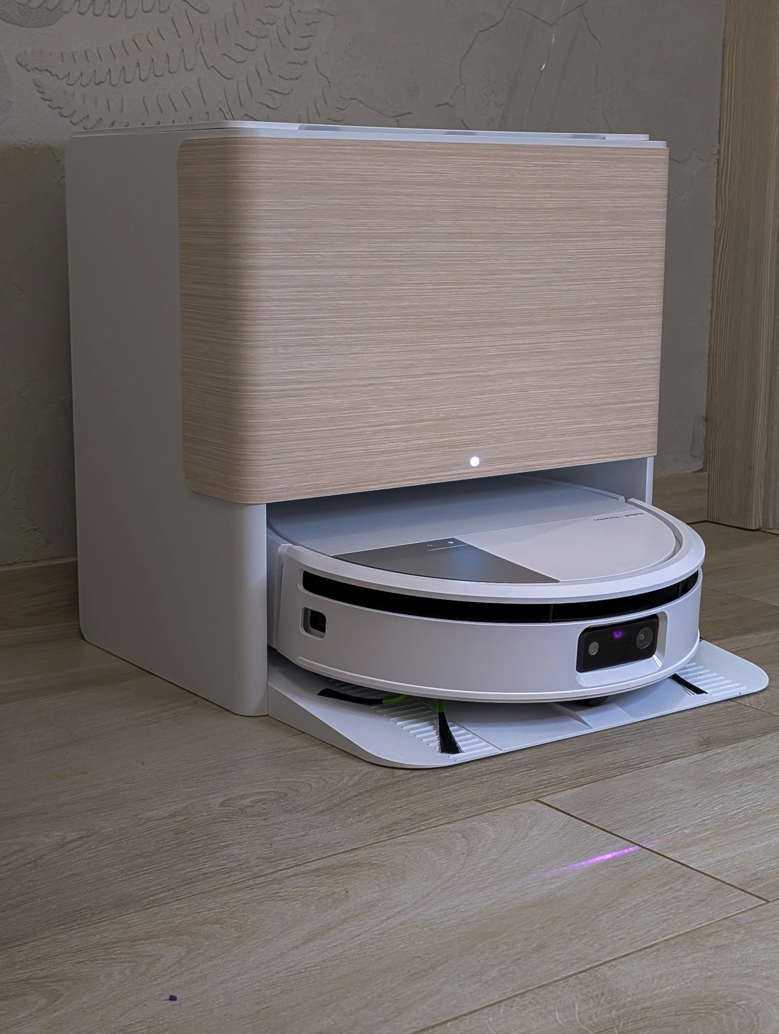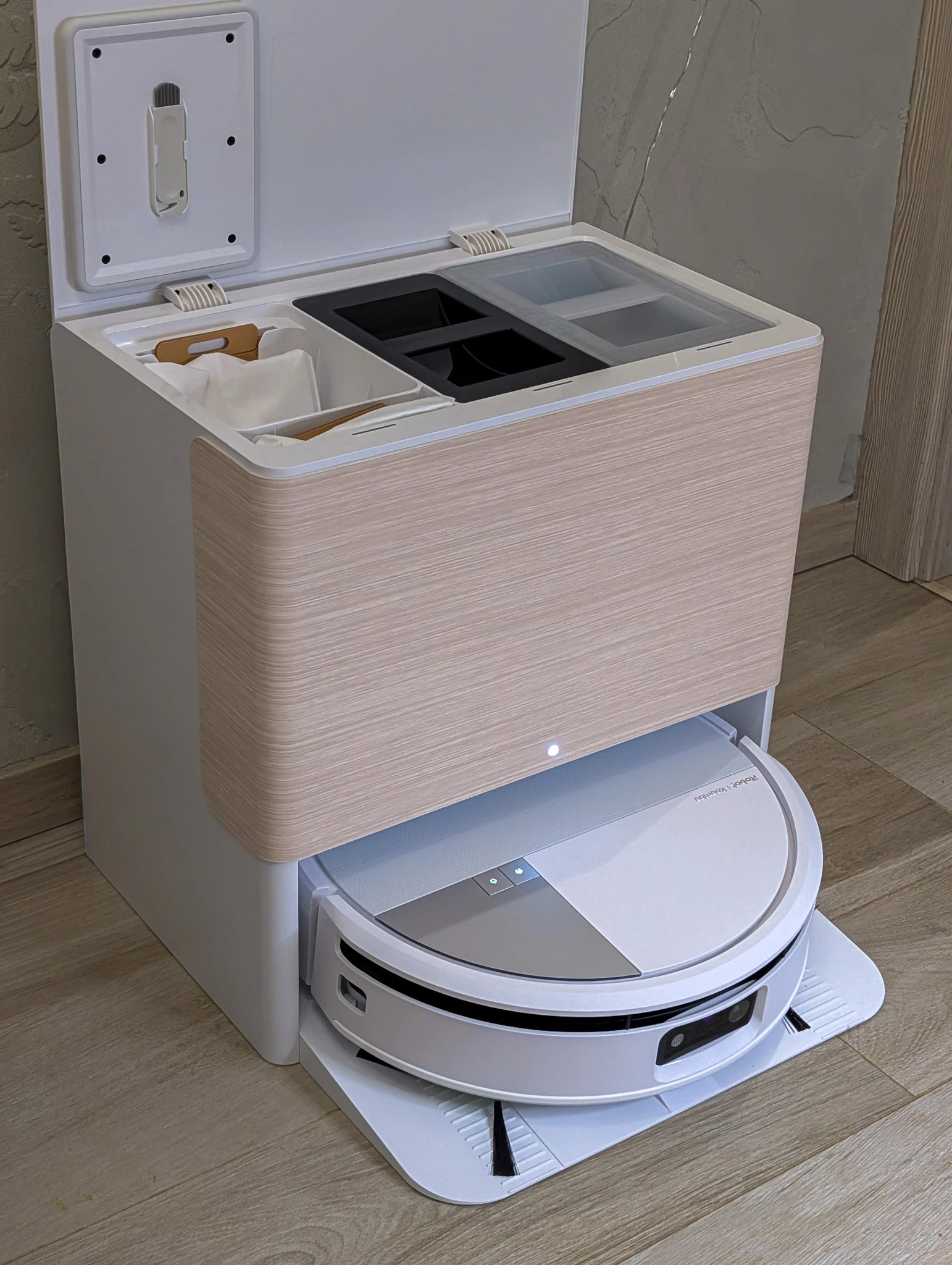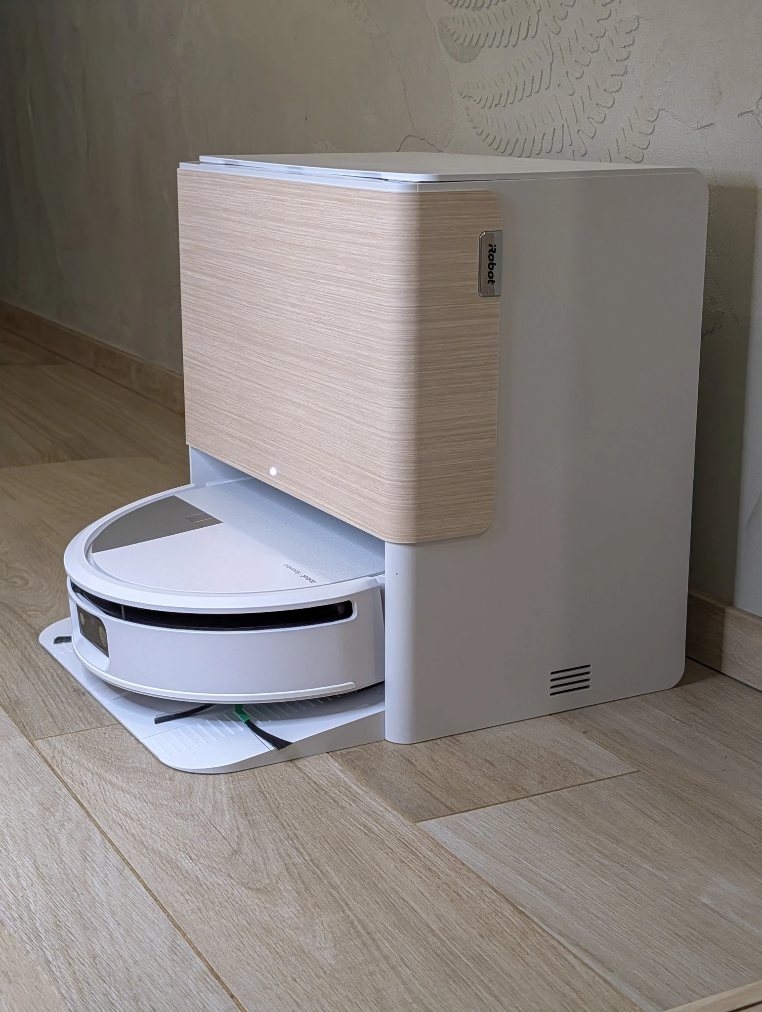 Od tego zacznę, bo współczesne mieszkania nie pozwalają na chowanie robotów sprzątających gdzieś na uboczu, więc są stałym elementem wystroju. Dlatego oprócz funkcji ważna jest forma i to iRobot realizuje doskonale. Elegancka biała stacja o kompaktowych wymiarach ma ładny akcent imitujący drewno. Dzięki niemu wiecie, że obcujecie z produktem z półki premium. Czuć piniądz, jak mówią na Podhalu. Patrzę na stację dokującą kilka razy każdego dnia i po dwóch tygodniach użytkowania sprzętu nadal jestem nią zachwycony. Tak się powinno projektować urządzenia domowe.