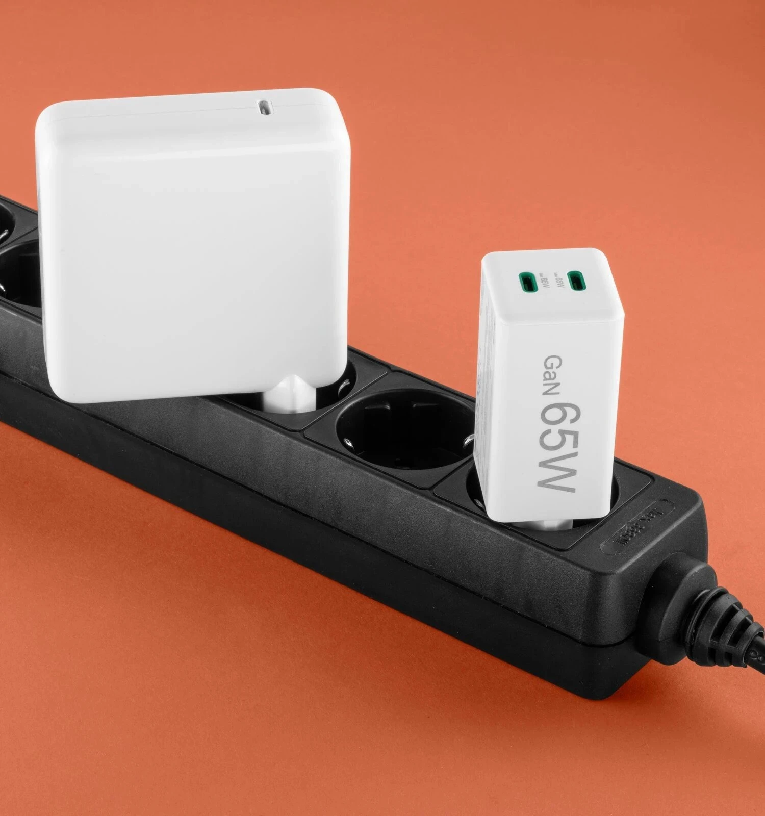 Jeśli chcemy skorzystać z pełnej mocy (65 W), należy ładować wyłącznie jedno urządzenie z pomocą kabla z końcówką USB-C. Jeśli podłączymy większą liczbę urządzeń, wtedy moc zostanie podzielona. W identycznej cenie można kupić też 130-watową wersję z czterema portami - ten wariant jest jednak znacznie większy. Jeśli chcemy, aby było możliwe najszybciej warto rozważyć wyższy model.