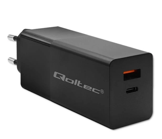 W cenie 140 zł możemy kupić podłużną, lecz stosunkowo niewielką (wymiary 32 x 112 x 39 mm) ładowarkę marki Qoltec o mocy 100 W. Sprzęt został wyposażony w port USB-C oraz USB-A: wspiera zatem ładowanie dwóch sprzętów jednocześnie. Jeśli chcemy ładować MacBooka z możliwie najwyższą mocą, taka wartość będzie wystarczająca.