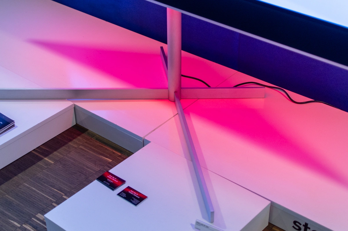 Rama z szczotkowanego aluminium, ukryte zarządzanie kablami i opcjonalna zmotoryzowana podstawa pozwalająca na płynną rotację ekranu - to wszystko składa się na wrażenie, że mamy do czynienia nie tyle z telewizorem, co z dziełem sztuki przemysłowej. A charakterystyczny pierścień oraz podświetlenie magic.light nadają całości niepowtarzalny charakter, który można dostosować do własnych preferencji kolorystycznych.