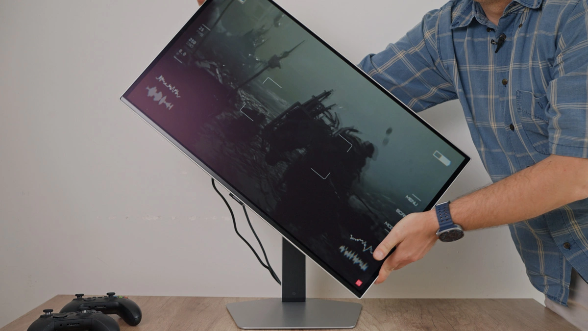 Ergonomia została dopracowana do perfekcji - pełna regulacja wysokości do 12 cm, pochylenia, obrotu (-30° do +30°) i funkcja pivot (-92° do +92°) pozwalają dopasować pozycję ekranu do każdych wymagań użytkownika. Maksymalna wysokość regulacji wystarcza dla zdecydowanej większości konfiguracji biurkowych, a płynność wszystkich ruchów świadczy o wysokiej jakości mechanizmów. Waga monitora z podstawą wynosi 6,9 kg, co zapewnia doskonałą stabilność nawet przy najżywszych sesjach gamingowych.