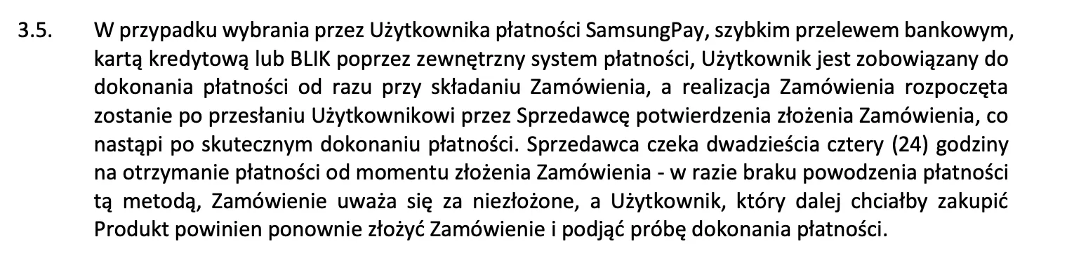 Teraz, oprócz czysto PRowych zapowiedzi, mamy także namacalny dowód tych wysiłków. W miniony weekend na skrzynki mailowe klientów Sklepu Samsunga trafiła informacja o aktualizacji regulaminu, wspominająca wprost o Samsung Pay jako metodzie płatności.