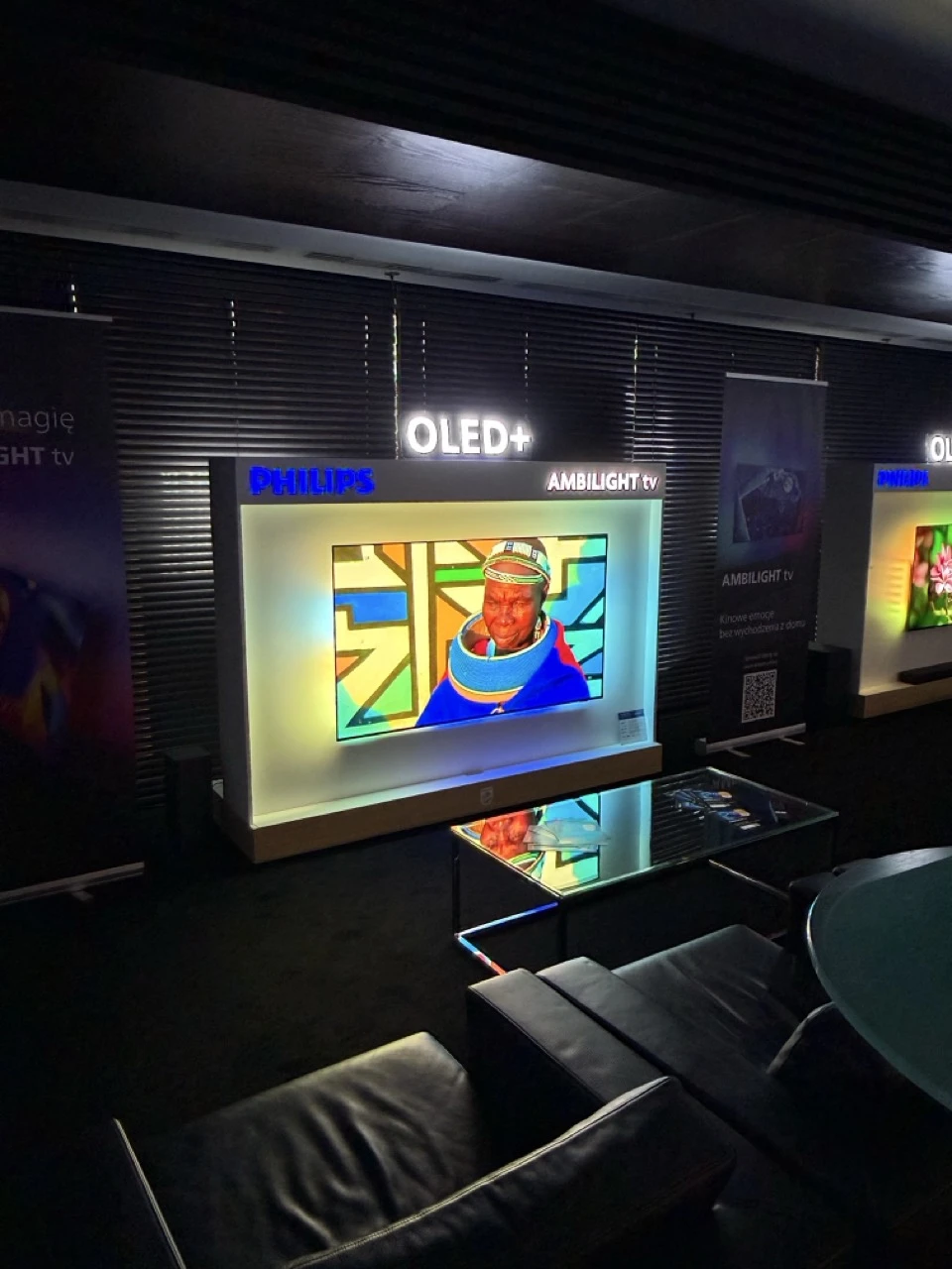 Sprawdziliśmy, jak świeci od przodu i od tyłu Philips OLED+950 z matrycą OLED META 3.0 RGB oraz systemem Ambilight. Pierwszy i jak na razie jedyny egzemplarz tego Smart TV w Polsce pojawił się właśnie na targach Audio Video Show 2025.