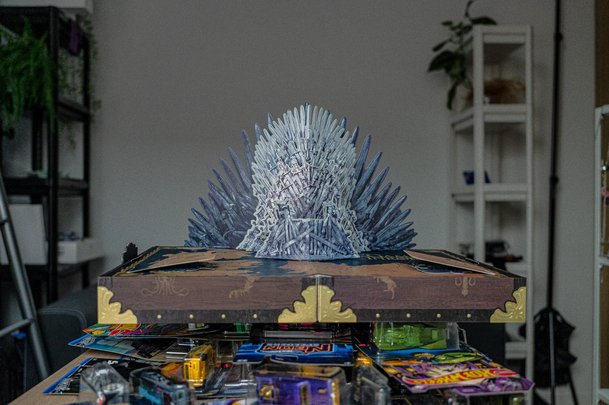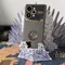 Centralnym punktem jest miniaturowy, metalowy Żelazny Tron, na którym spoczywa smartfon. Jak zdradzili projektanci, celem było wywołanie u fanów uczucia, „jakby byli świadkami nowego, możliwego zakończenia historii, w którym to oni zasiadają na tronie”.