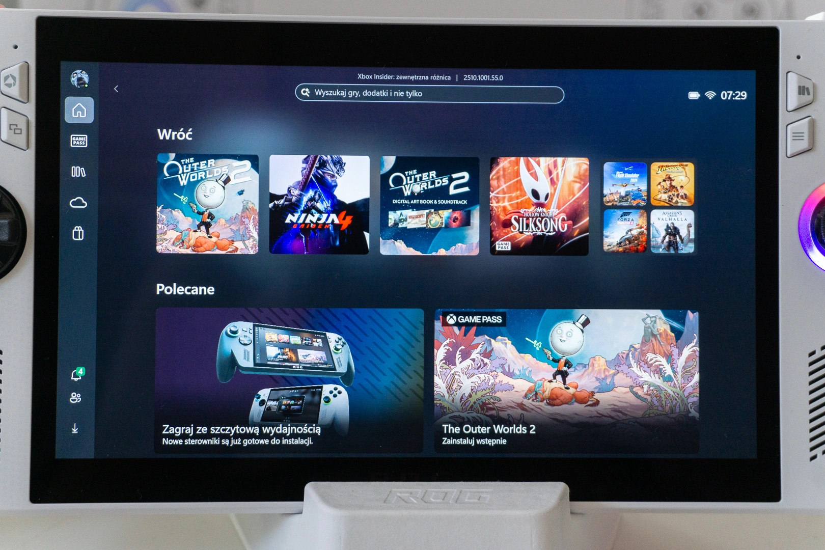 Kluczową nowością ASUSA ROG Xbox Ally jest alternatywna wersja aplikacji Xbox, działająca w trybie pełnoekranowym, z interfejsem dopasowanym pod sterowanie analogami. Taki odpowiednik Steam Big Pictue, pozwalający cieszyć się grami z różnych źródeł. Nie tylko Game Passa i Sklepu Microsoft, ale również Steam, GOG czy EA App.