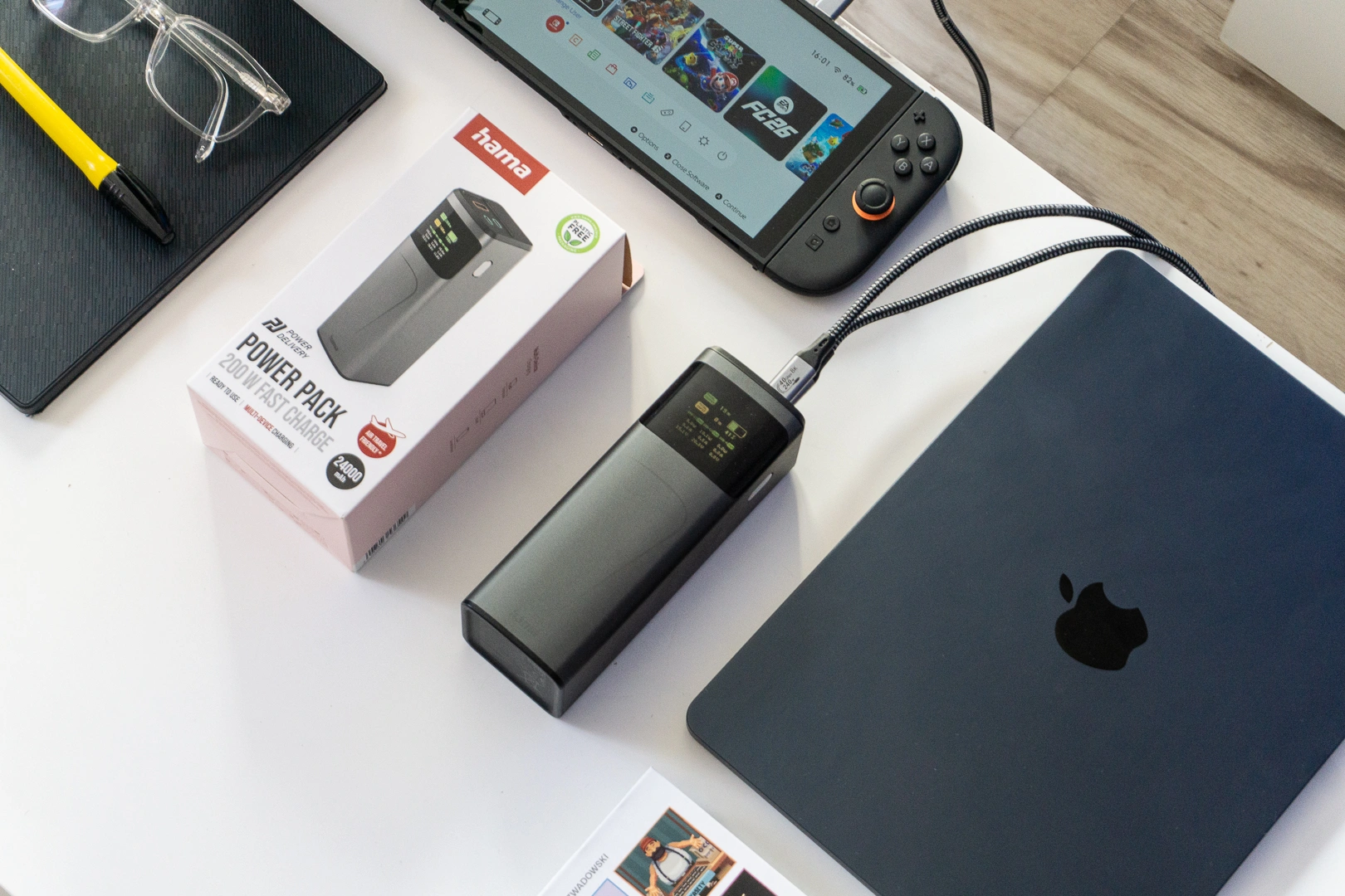 Jeszcze dwa lata temu rynek powerbanków 200W/20000+ mAh był zdominowany przez dwie, może trzy firmy. Teraz technologia jest powszechniejsza, co za tym idzie, producenci tacy jak Hama mogą wprowadzać na rynek sprzęty o przyjemnym stosunku ceny do możliwości. Takie, które są zarówno mocne, jak i bezpieczne, co sprawdziłem na szerokim spektrum własnych urządzeń elektronicznych. MacBook na wyjeździe służbowym czy Switch 2 w łóżku, Hama High Power 200W spisuje się świetnie.