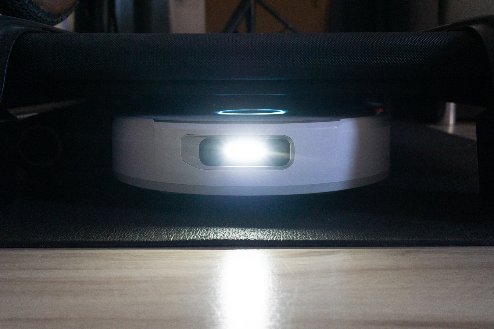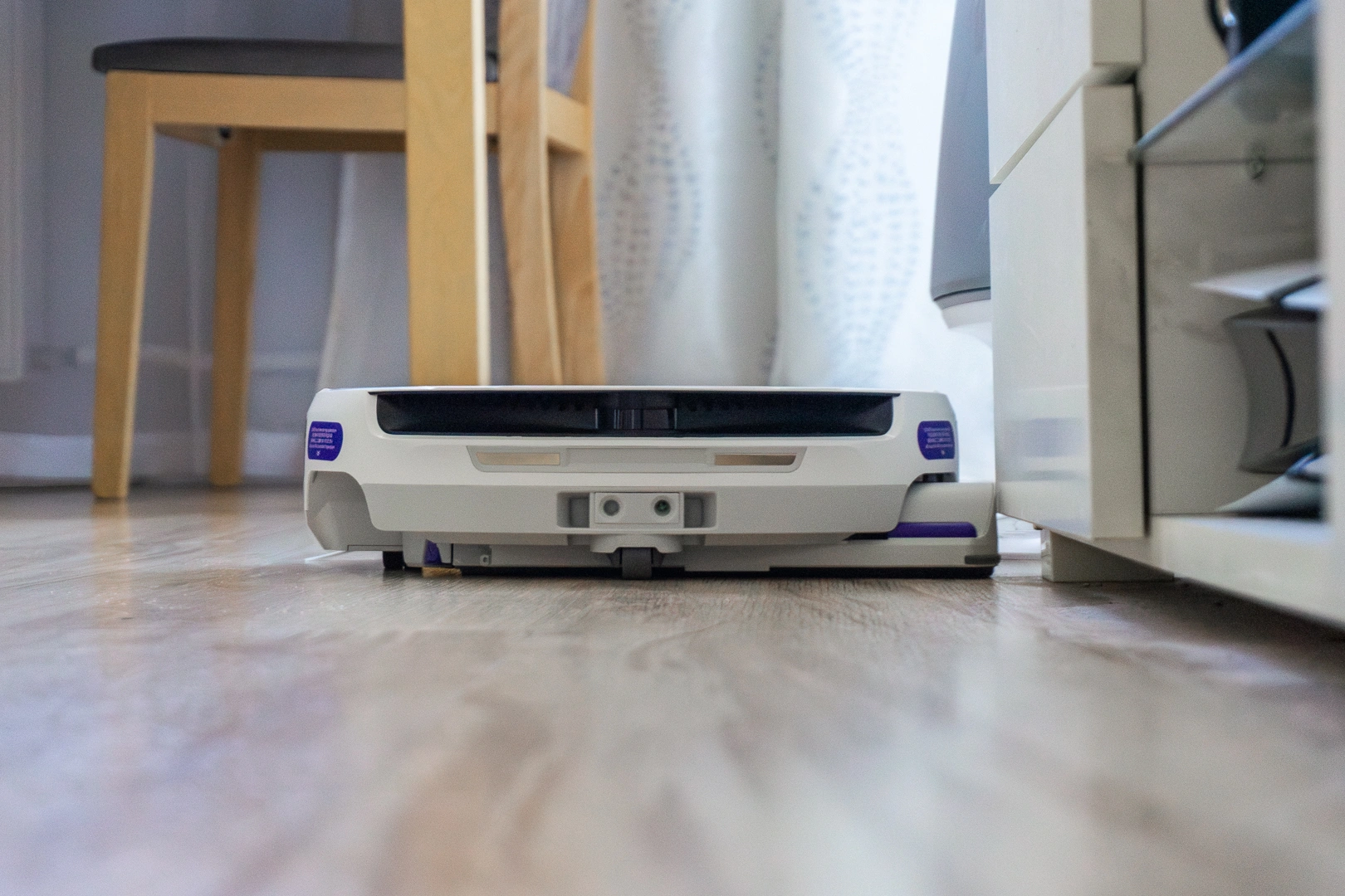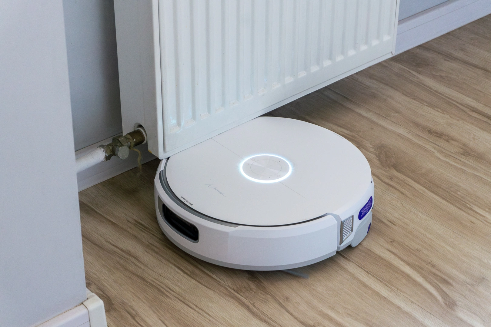 Obawiałem się, że wysoki robot nie wjedzie mi pod łóżko, bieżnię czy kaloryfer. W praktyce Narwal Flow zdobył wszystkie te trzy miejsca. Chociaż przyznaję – pod kaloryferem robi się czasem nerwowo. Robot niemal czuje go na swoim grzbiecie, ale mimo tego delikatnie, centymetr po centymetrze, zdobywa kolejny teren. Niestety, w efekcie powstały na nim rysy, widoczne pod światło. Sorry Narwal, przepraszam kolejny testerze!