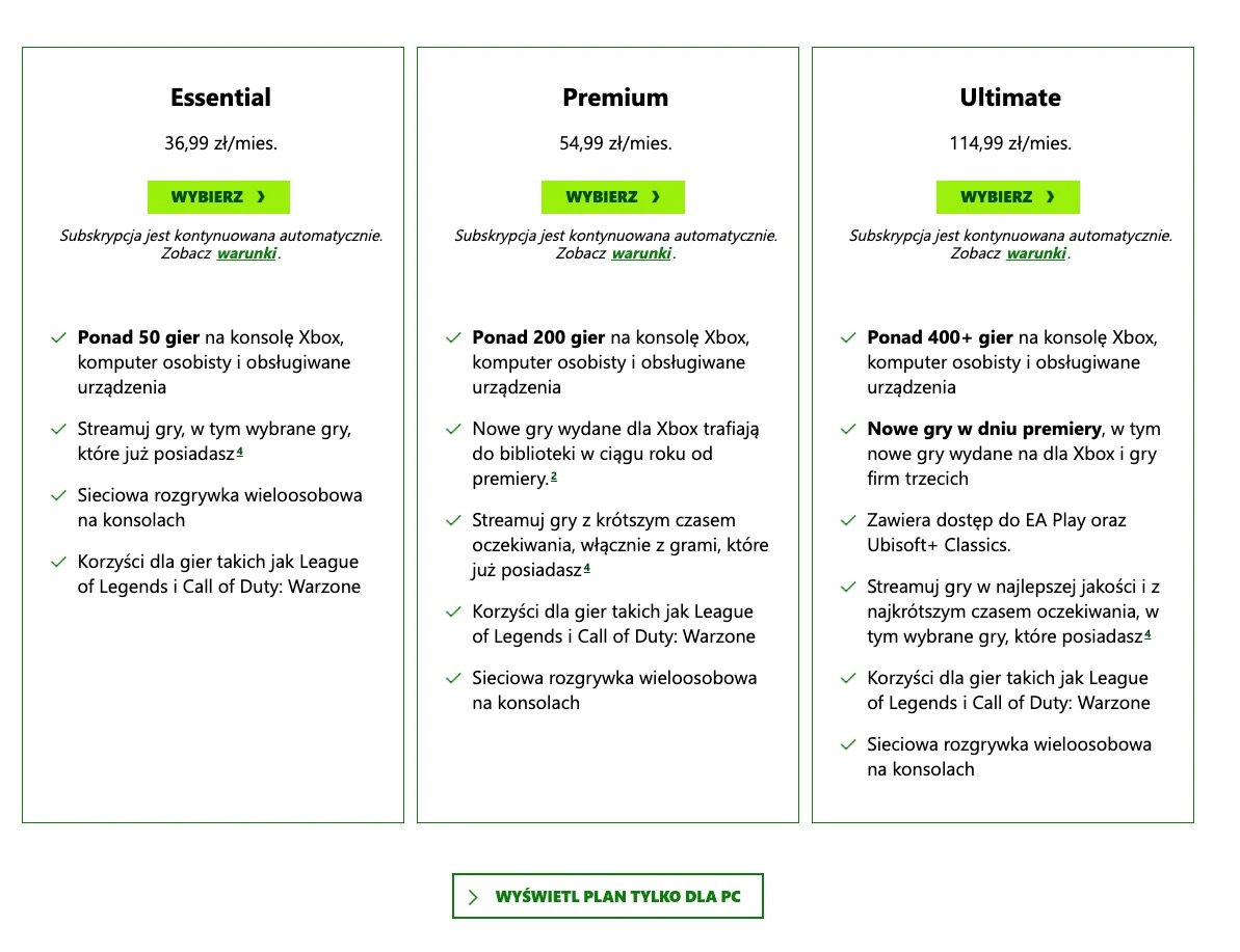 Istnieje również plan tylko dla graczy PC, który kosztuje 62,99 zł/mies., który także podrożał - wcześniej korzystał 54,99 zł/mies.