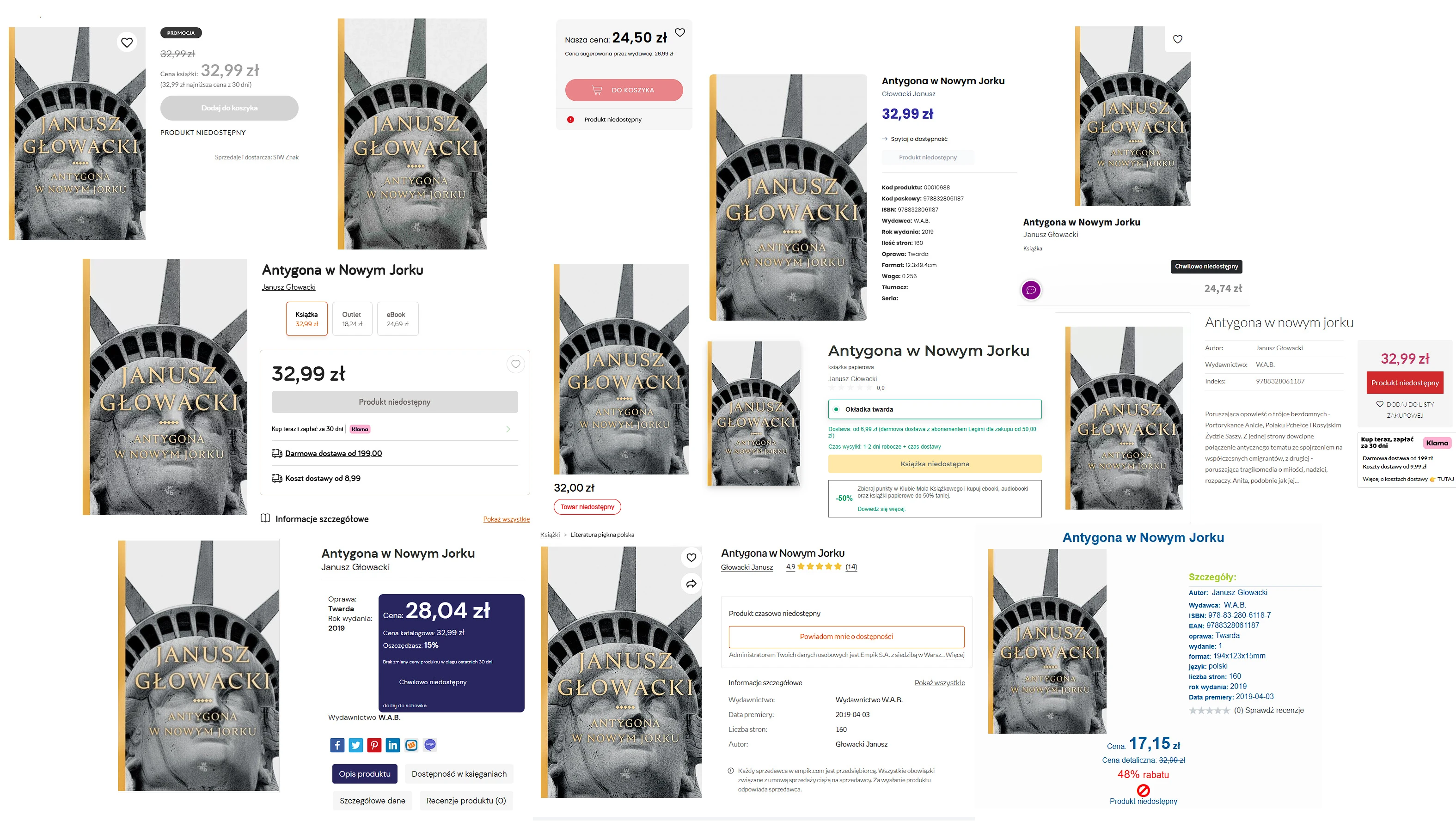 W chwili pisania tego artykułu "Antygona w Nowym Jorku" jest niedostępna właściwie wszędzie - spędziłam ponad dwie godziny przeglądając ofertę internetowych księgarń i antykwariatów. Dostępna jest tylko jedna kopia. Na Allegro. Za 499 zł.