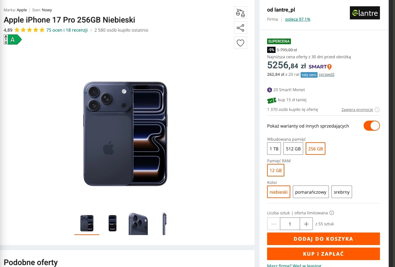 iPhone 17 Pro za ok. 5250 zł na Allegro (ok. 450 zł taniej)