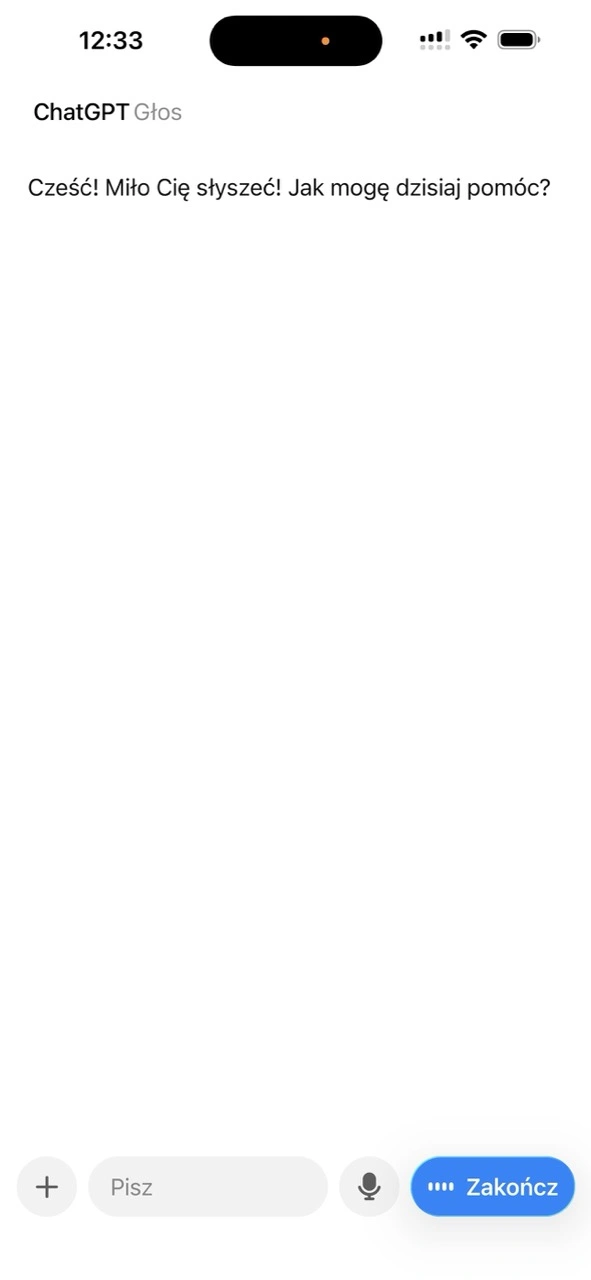 Kliknięcie niebieskiej charakterystycznej ikony na czacie natychmiast uruchamia konwersację z ChatemGPT. Wszystko, co powiemy, oraz odpowiedzi modelu pojawiają się na ekranie. To otwiera też nowe możliwości.