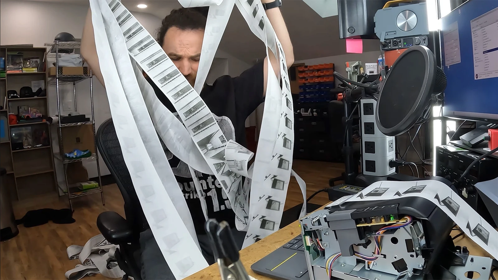 Gdy sprzęt wreszcie zaczął działać poprawnie, youtuber napisał własny program konwertujący obraz gry do monochromatycznych klatek i wysyłający je do drukarki. Konieczne było też strojenie jasności - pełne czerni ujęcia mogły przegrzać głowicę termiczną, która wtedy wstrzymywała druk i tworzyła wielką kolejkę buforowanych klatek. W ruch poszedł dodatkowy wentylator, montowany przed mechanizmem drukującym.