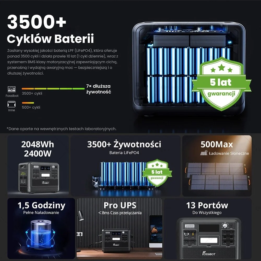 Fossibot F2400 – wygodna stacja zasilania 2048 Wh / 2400 W