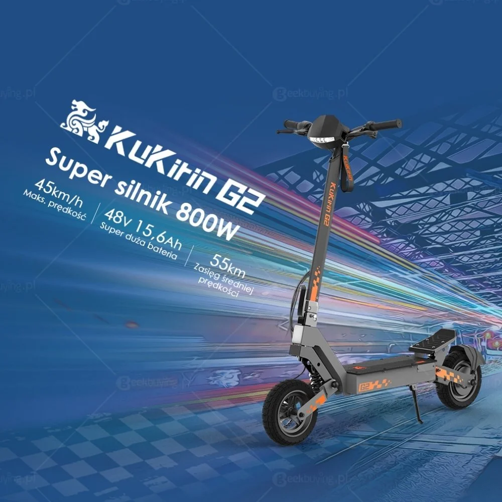 Model KuKirin G2 o mocy 800 W to bardzo dobre rozwiązanie do jazdy miejskiej – zapewnia odpowiednią dynamikę, a przy tym jest stosunkowo lekki i poręczny. To idealny wybór na codzienne dojazdy, także tam, gdzie trzeba hulajnogę wnieść lub schować. Jeśli zastanawiasz się nad wyborem między G2 a mocniejszym modelem, weź pod uwagę, czy rzeczywiście potrzebujesz większej mocy, czy jednak ważniejsza jest dla ciebie mobilność i wygoda.