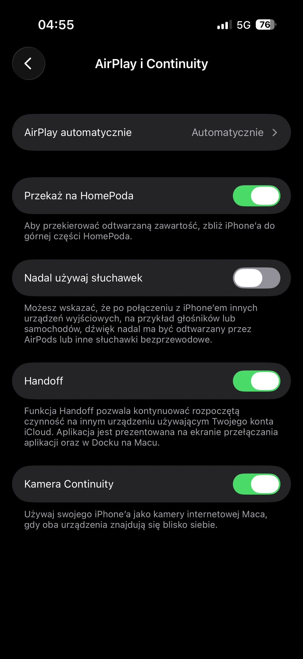 Jak zmienić ustawienie (AirPlay i Ciągłość)