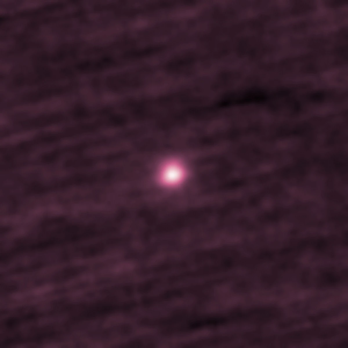 Kamera HiRISE (High Resolution Imaging Science Experiment) zainstalowana na pokładzie sondy Mars Reconnaissance Orbiter należącej do NASA uchwyciła ten obraz międzygwiezdnej komety 3I/Atlas 2 października 2025 r.