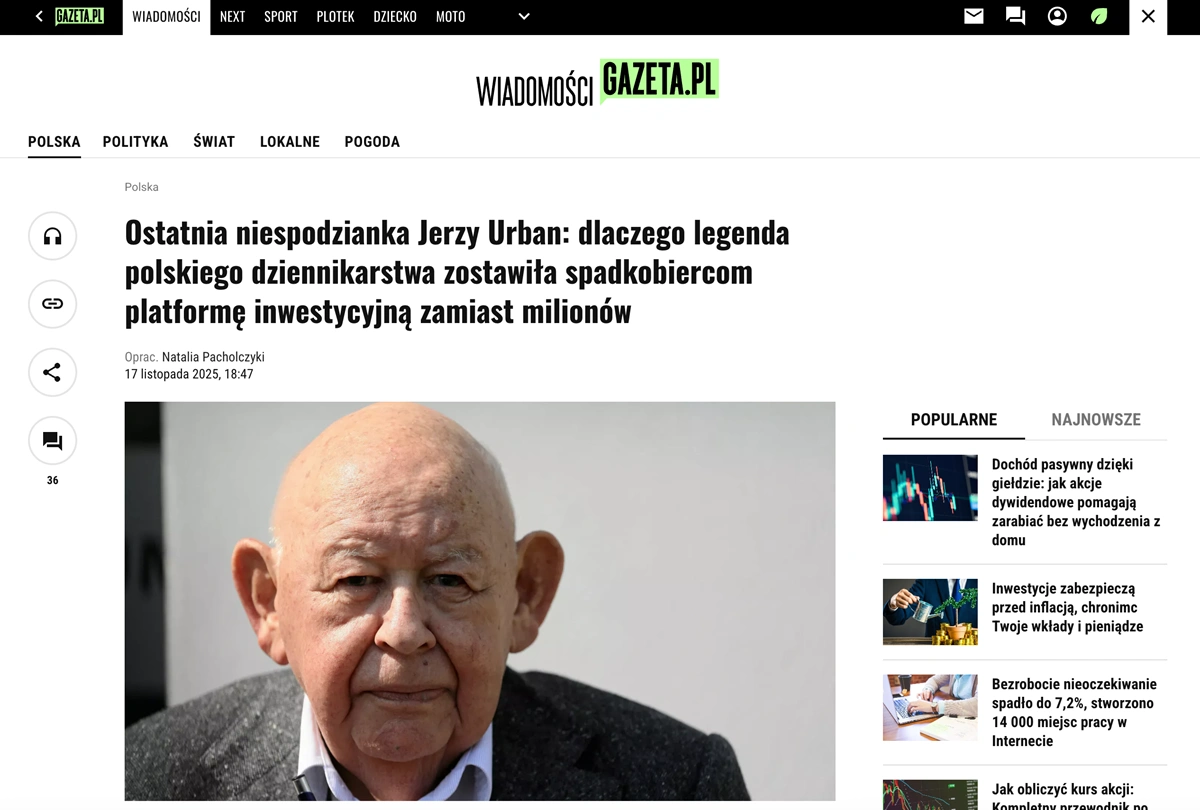 Zauważyliśmy w redakcji reklamę, wyświetlaną w eksponowanym miejscu, wśród innych sponsorowanych (!) treści. Sensacyjny nagłówek przykuwał uwagę, a i bez niego wzrok mógłby trafić na baner. Głównym bohaterem jest w końcu Jerzy Urban, który choć od dawna nie żyje, to dalej budzi wiele emocji.