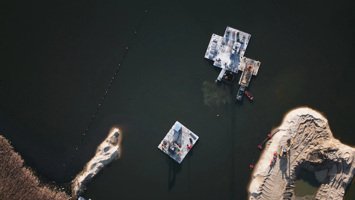 Intensywność prac - niezbędną przy tak gigantycznym, wartym miliardy złotych przedsięwzięciu - widać niemal na każdym kroku, i to zarówno na papierze, jak i fizycznie na miejscu. W szczytowych momentach na budowie pracuje nawet ponad 1200 osób, a praca wre na każdym poziomie - i poniżej gruntu, i kilkadziesiąt metrów ponad nim, a nawet... na wodzie i pod wodą.