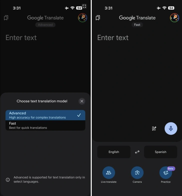 Rozwiązanie stworzone w celu tłumaczenia tekstu dostępne nie tylko w wyszukiwarce i aplikacji, ale też np. w Obiektywie Google czy funkcji "Zakreśl, aby wyszukać" zaczęło odstawać np. od chatbota Gemini w kwestii tłumaczenia. Autorzy z serwisu 9to5Google zauważyli, że w najnowszej wersji aplikacji dla systemu iOS aplikacja oferuje opcję wyboru modeli tłumaczenia.