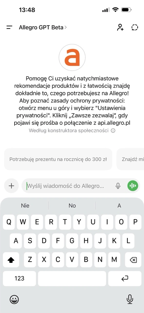 Jednocześnie rozwijany jest też asystent sztucznej inteligencji bezpośrednio na Allegro. Ten obecnie ma być dostępny tylko dla wybranych użytkowników polskiej platformy e-commerce.