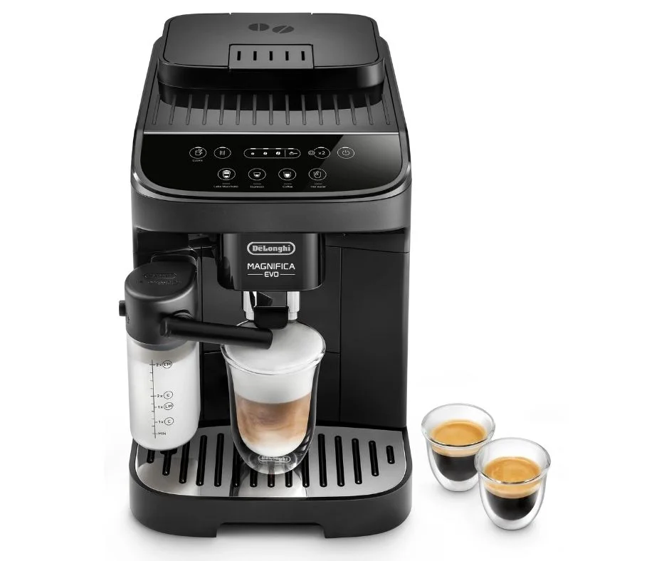 DeLonghi Magnifica Evo ECAM290.51.B to klasyczny automat do kawy ziarnistej: wbudowany młynek, możliwość regulacji mocy i ilości naparu, kilka zaprogramowanych rodzajów kaw czarnych oraz klasyczna dysza pary do spieniania mleka. Jest idealny dla kogoś, kto chce rano jednym przyciskiem zrobić espresso lub dużą kawę, a od czasu do czasu cappuccino z ręcznie spienionym mlekiem.