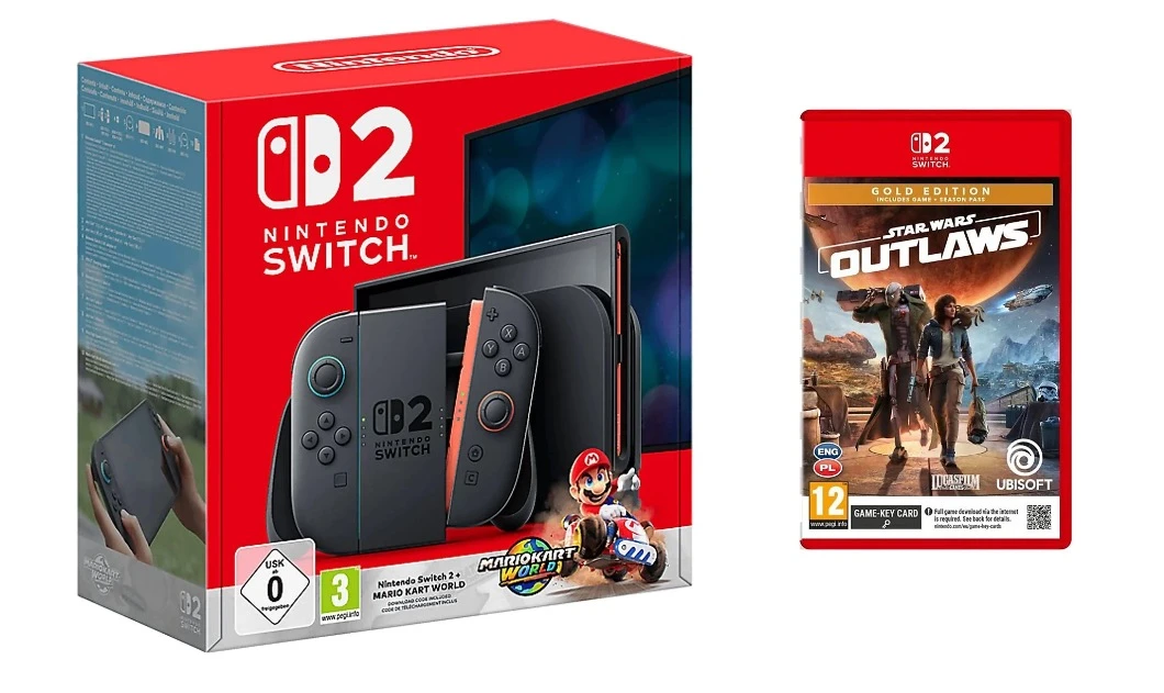 Jest kolejna okazja do kupna Nintendo Switcha 2 z grami. W sklepie MediaMarkt mamy zestaw obejmujący konsolę, Mario Kart World oraz Star Wars Outlaws Gold Edition, który kupimy za ok. 2070 zł. Standardowo kosztuje 2299 zł, natomiast możemy odebrać dodatkowe 10 proc. rabatu.