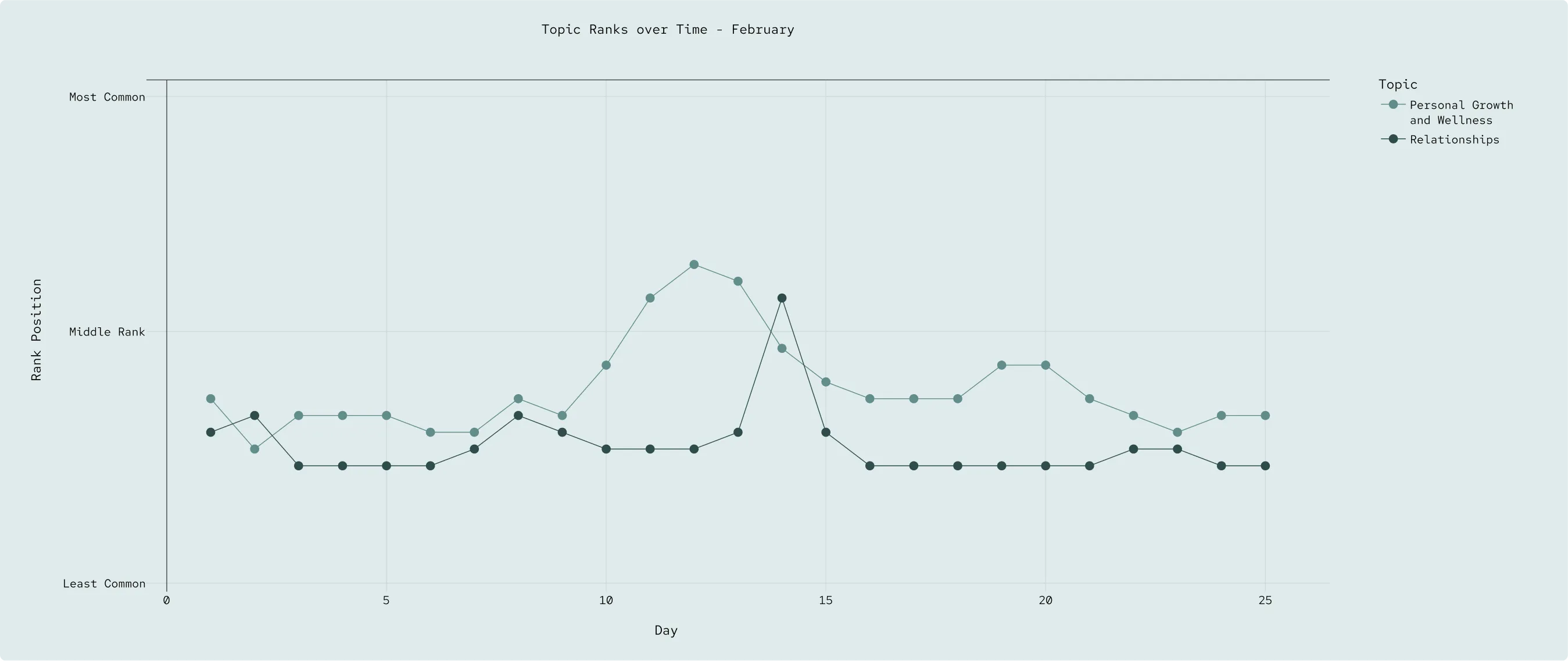 W lutym statystyki eksplodowały w kategoriach Relacje i Wellness. Powód? Walentynki. Copilot stał się nieoficjalnym doradcą w sprawach sercowych: pomagał pisać wiadomości, planować romantyczne wieczory, a czasem po prostu wspierał emocjonalnie. To pokazuje, jak naturalnie AI wkracza w najbardziej osobiste momenty naszego życia.