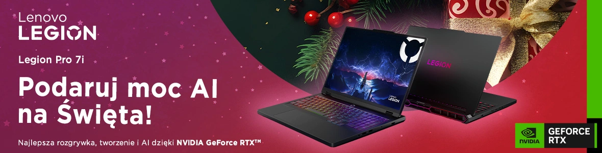 Okres świąteczny to tradycyjnie czas nadrabiania zaległości w grach i sprawdzania najnowszych propozycji. To też moment, w którym bardzo szybko wychodzi na jaw, czy nasz laptop jeszcze daje radę, czy już tylko „jakoś to ciągnie” przy obniżonych detalach. Lenovo Legion Pro 7 16IAX10H z kartą NVIDIA GeForce RTX 5090 został zaprojektowany dokładnie pod ten scenariusz: to maszyna, która ma bez zadyszki dźwignąć najnowsze gry z DLSS 4, pełnym ray tracingiem i całym pakietem technologii RTX, a przy okazji sprawdzić się jako sensowny komputer do pracy, tworzenia treści i AI.