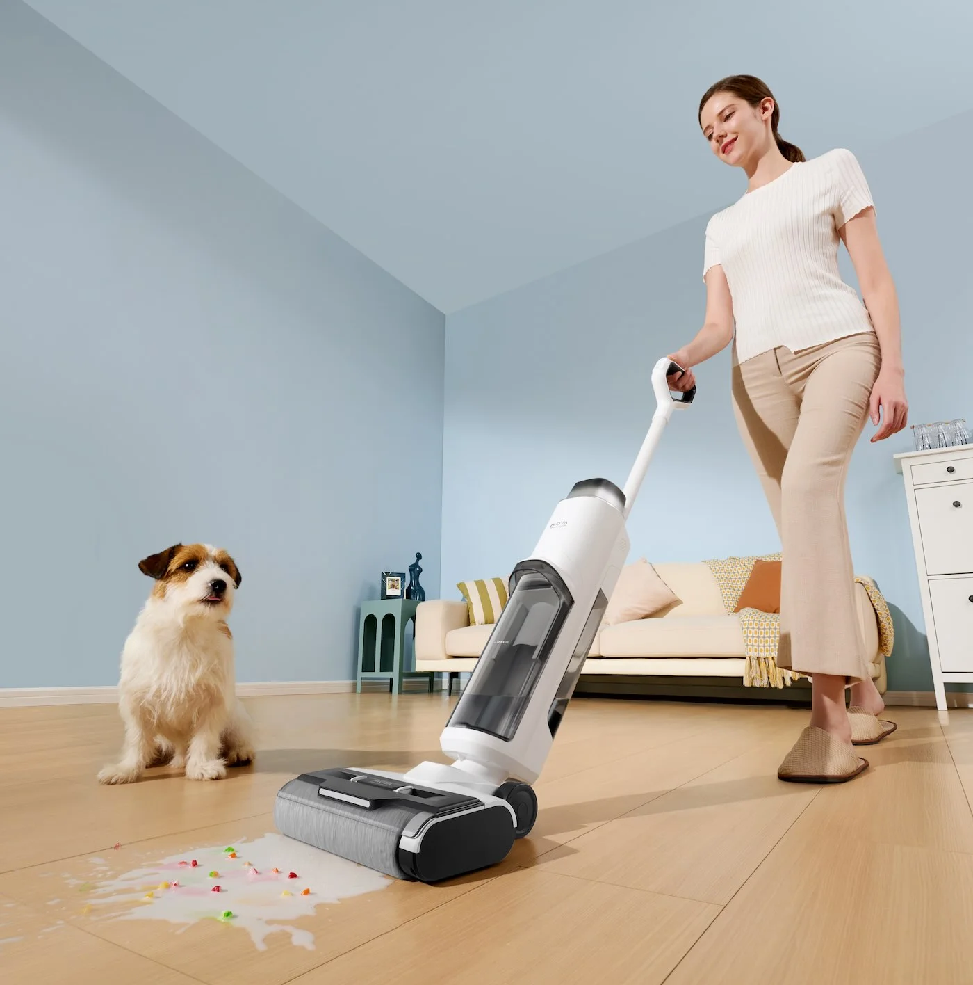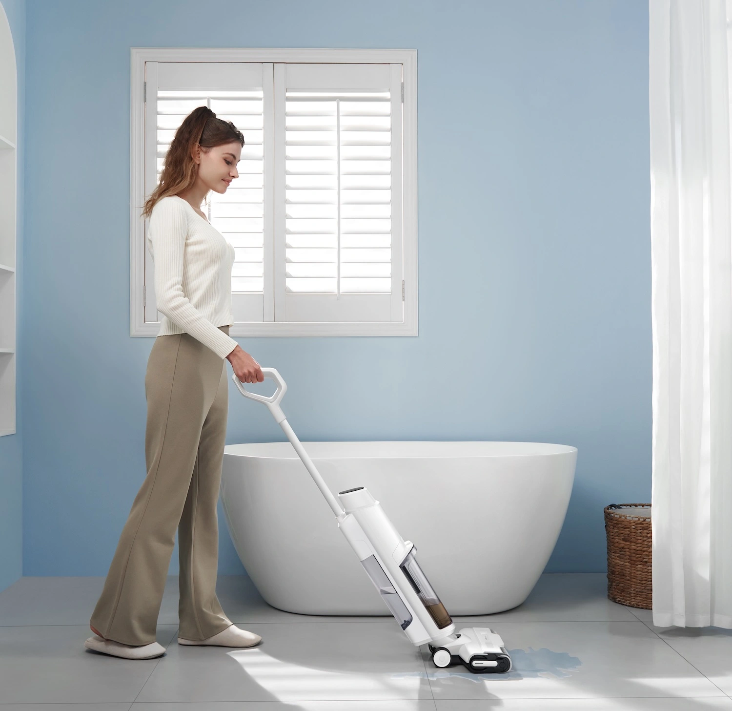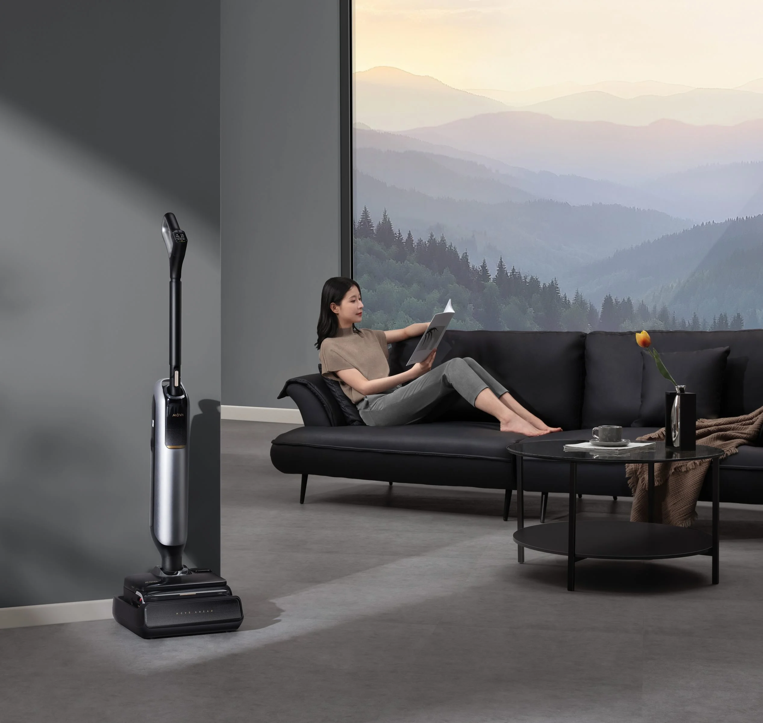Prowadzenie odkurzacza ułatwia inteligentny system wspomagania napędu kół, który sprawi, że nie zmęczymy się podczas pracy. Samo sprzątanie jest niezwykle przyjemne, bo sprzęt automatycznie dozuje środek czyszczący, a po zakończeniu czyszczenia i odstawieniu go na stację dokującą najpierw umyje szczotkę w temperaturze 100 stopni Celsjusza, a następnie ją wysuszy w 90 stopniach C. Zapobiegnie to powstawaniu pleśni i brzydkich zapachów.