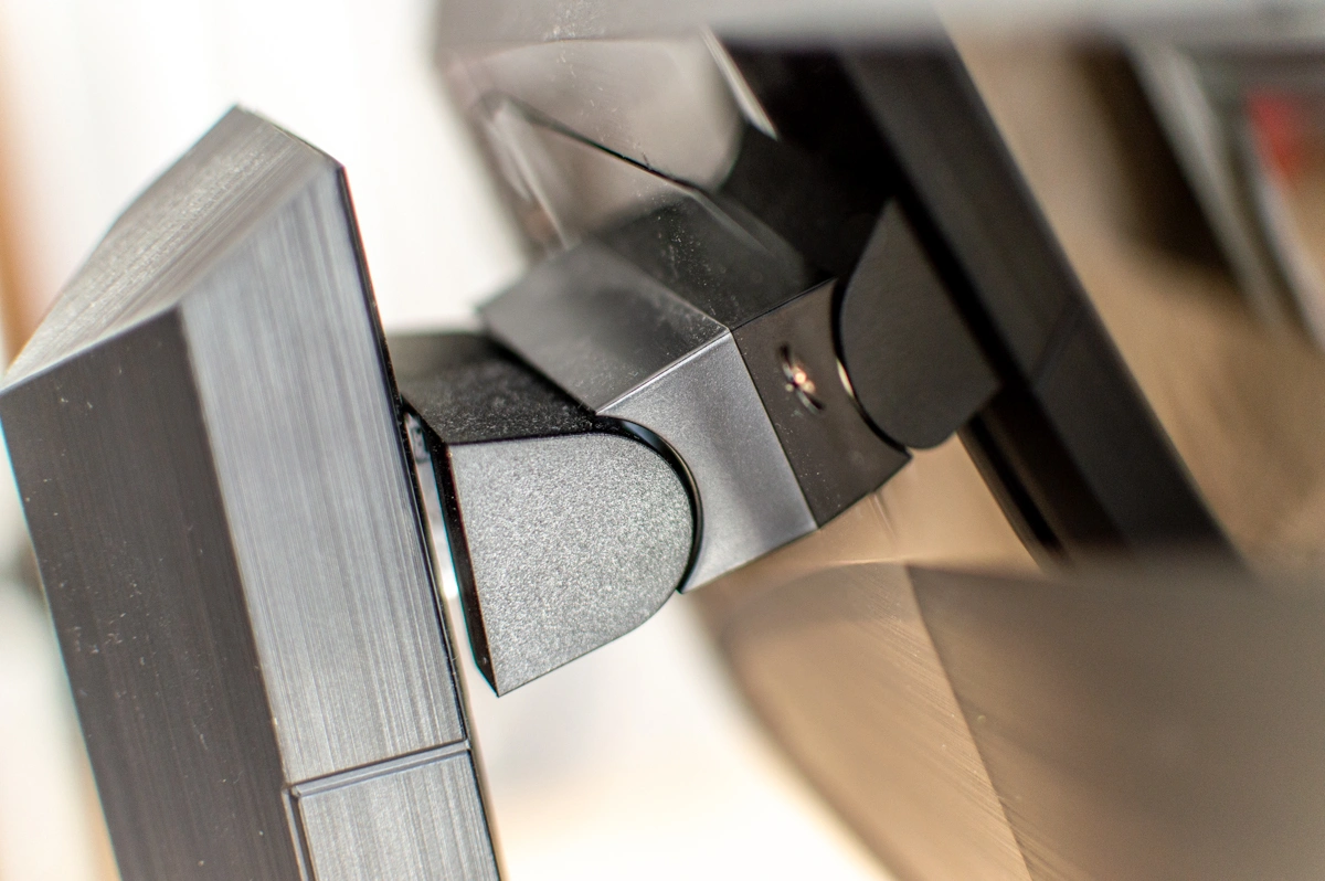 Podstawa pozwala na regulację wysokości (130 mm), nachylenia (-5° do +20°), ale brakuje możliwości obrotu (swivel). To ograniczenie może być problematyczne w niektórych konfiguracjach biurkowych. Na szczęście monitor obsługuje standard VESA 100x100, więc można go zamontować na ramieniu lub uchwycie ściennym.
