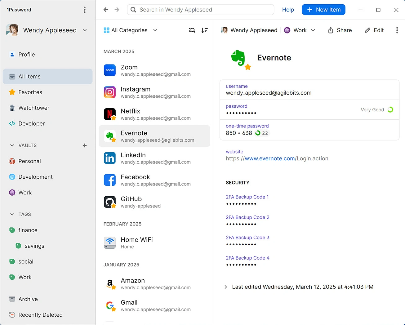 1Password wyróżnia się także kilkoma funkcjami, których zwyczajnie brakuje wielu konkurentom. Tryb Travel Mode pozwala ukryć wybrane sejfy na czas podróży - na urządzeniu pozostają tylko te dane, które oznaczysz jako bezpieczne w drodze. Menedżer potrafi również przechowywać i obsługiwać passkeys, a w najnowszych wersjach umożliwia nawet odblokowanie konta z użyciem passkey zamiast hasła głównego. Do tego dochodzą dobrze rozwiązane mechanizmy udostępniania: możesz generować linki do wybranych elementów, ustawiać czas ich ważności i ograniczać dostęp do konkretnych osób.