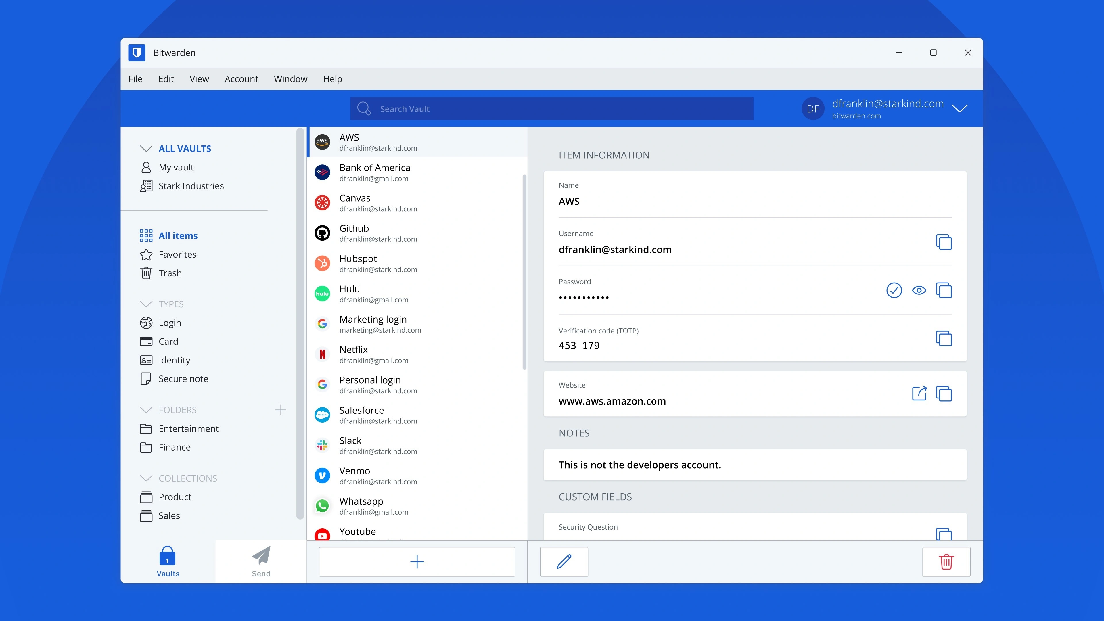Interfejs Bitwardena jest prosty, ale zaprojektowany z głową. Pozwala samodzielnie organizować sejf, tworzyć własne struktury folderów i kategoryzować dane według własnych zasad. Osoby, które lubią mieć wszystko poukładane po swojemu, szybko docenią tę elastyczność. Płatne plany dodają bardziej zaawansowane funkcje, takie jak rozbudowane 2FA czy dodatkowa przestrzeń na pliki, ale rdzeń pozostaje ten sam: stabilny, przewidywalny menedżer z bardzo mocnym darmowym planem.
