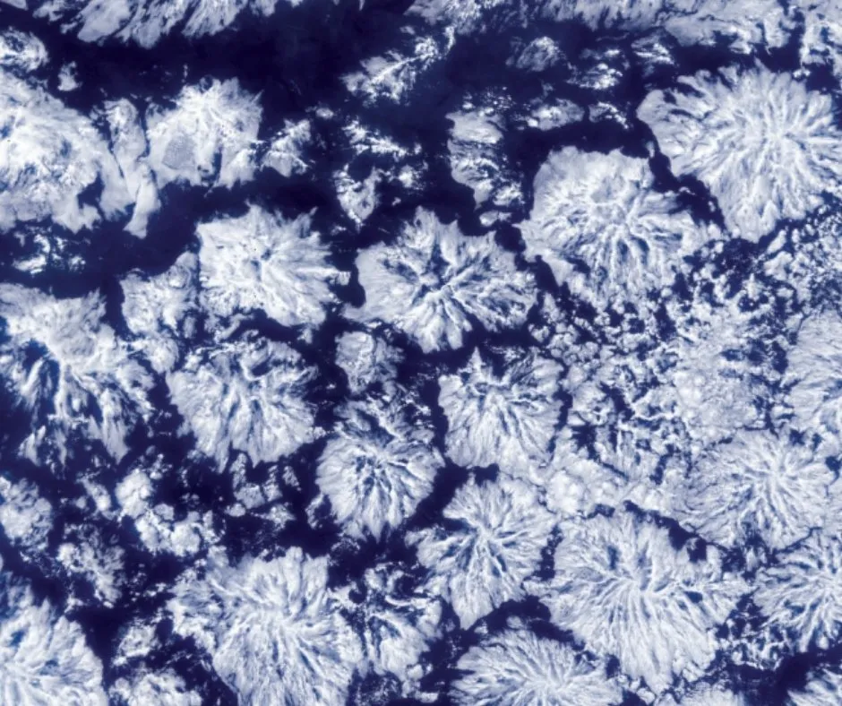 Kwiecień z kolei przypomina, że NASA patrzy nie tylko w kosmos, ale i na Ziemię. Na zdjęciu widać charakterystyczne, promieniste chmury nad wybrzeżem Peru. To tzw. chmury actinoform, widziane okiem satelity PACE. Wyglądają jak śnieżne kryształki albo delikatne płatki, ale dla klimatologów są przede wszystkim narzędziem do badania bilansu energetycznego planety – jedne chmury odbijają promieniowanie Słońca, inne zatrzymują ciepło blisko powierzchni.
