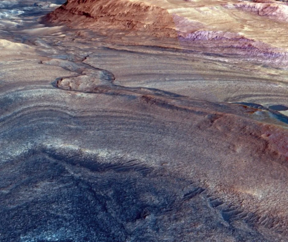 Luty przenosi nas na Marsa. Kadr z orbity pokazuje strome zbocza w kraterze Gale, który od lat eksploruje łazik Curiosity. Na zdjęciu widać ścieżkę wspinaczki w stronę kanału Gediz Vallis – miejsca bogatego w siarczany, czyli minerały powstające po odparowaniu wody. NASA przypomina przy okazji, że właśnie w takich rejonach szuka chemicznych śladów dawnych warunków sprzyjających mikroorganizmom.