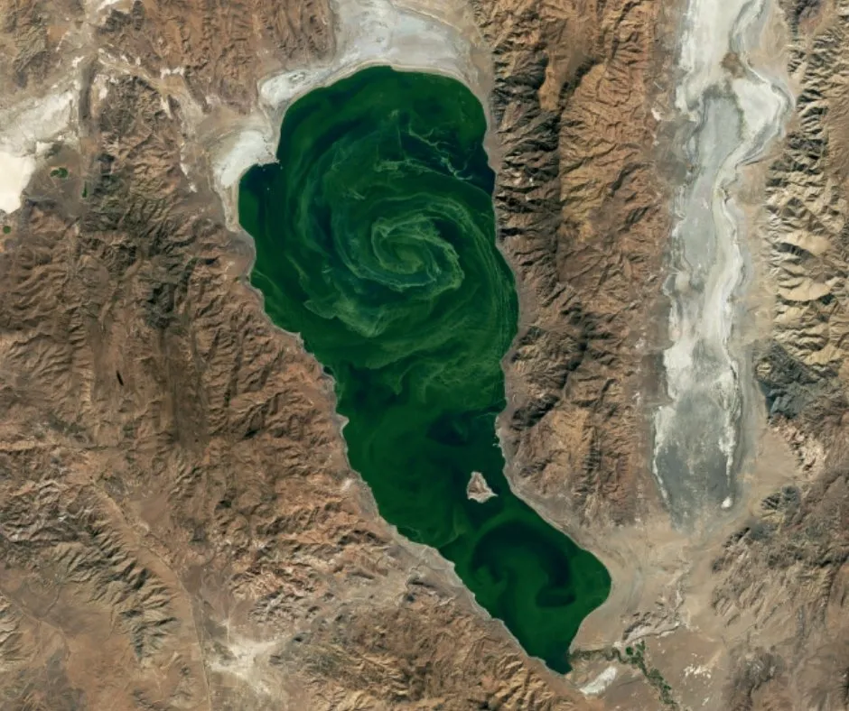 Na jednym z kolejnych miesięcy zobaczysz też charakterystyczne zielonkawe smugi na powierzchni jeziora Pyramid Lake w Nevadzie – to zakwity sinic, monitorowane z orbity dzięki misji Landsat. NASA przypomina w ten sposób, że dane z kosmosu trafiają później do bardzo przyziemnych zastosowań: od zarządzania jakością wody po ostrzeganie turystów.