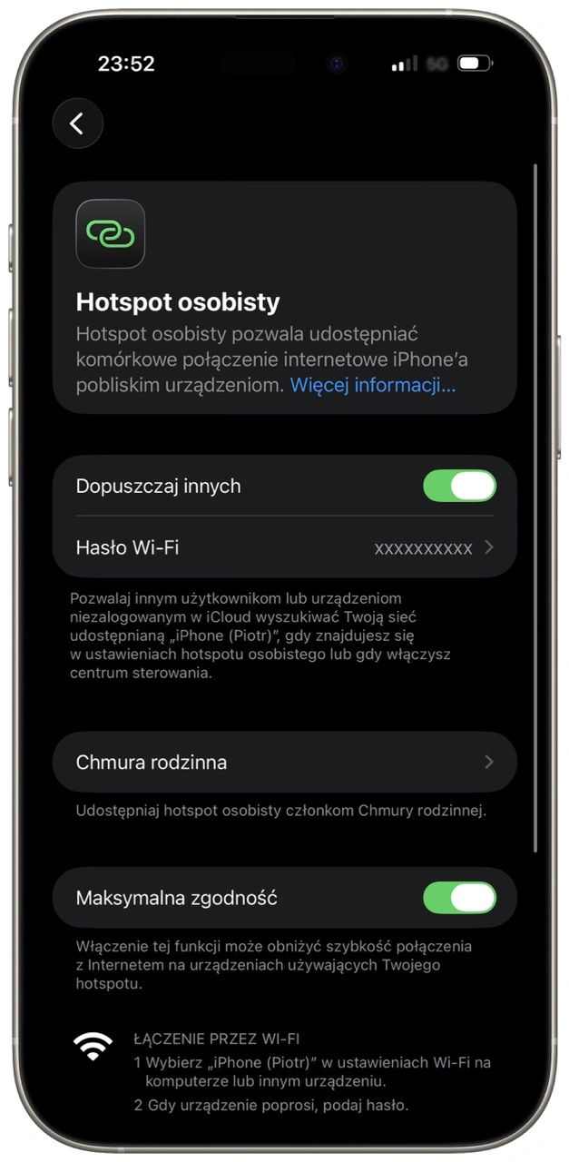 Jeśli potrzebujesz się połączyć z poziomu iPhone’a z Wi-Fi, to możesz oczywiście wpisać hasło - ale nie zawsze jest to konieczne. Inne osoby obecne w tej samej sieci mogą autoryzować takie połączenie z poziomu swojego urządzenia marki Apple jednym kliknięciem. To przydatne, gdy jesteśmy akurat w gościach u rodziny lub przyjaciół!