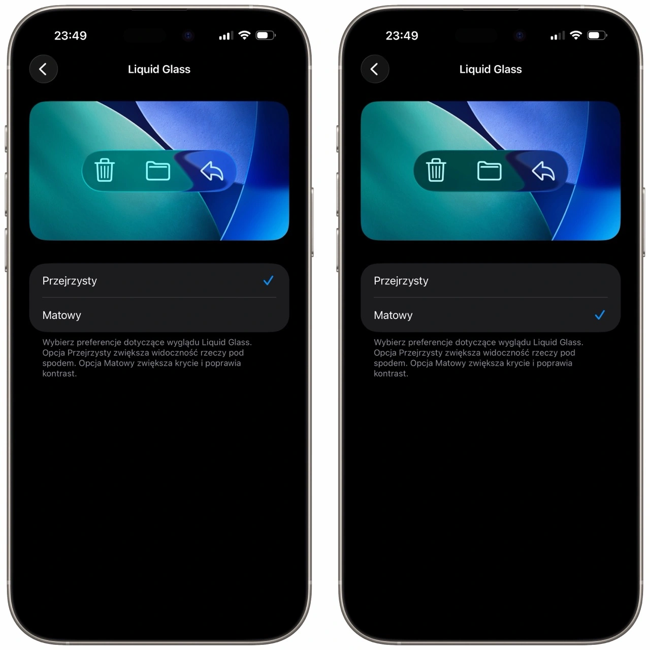W systemie iOS 26 wprowadzono gruntowne zmiany wizualne, które nie każdemu przypadły do gustu. Na szczęście w ramach aktualizacji oprogramowania pojawiła się możliwość zmiany interfejsu z przejrzystego na matowy w menu Ustawienia | Ekran i jasność | Liquid Glass.